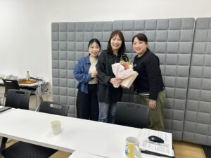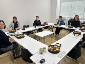 修士から5年間がんばった竹村さんへ、みんなからの質問攻めをしながら、春らしいお弁当を堪能しました。